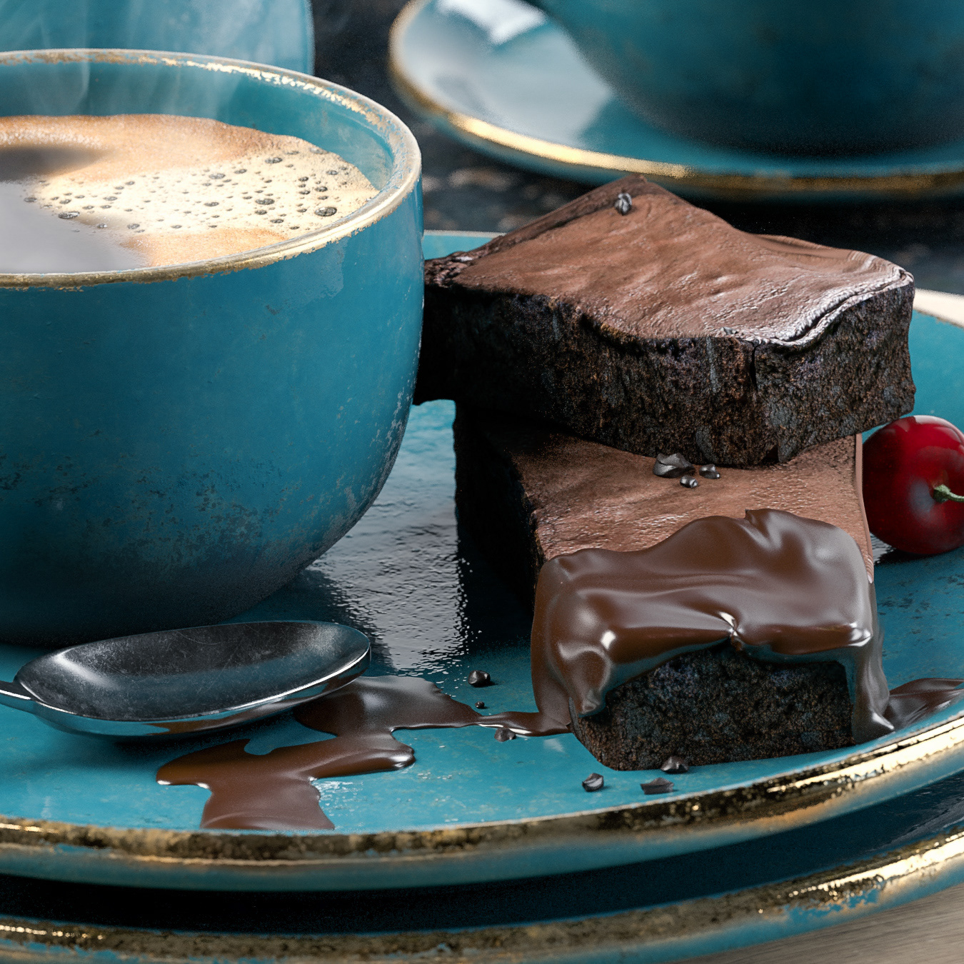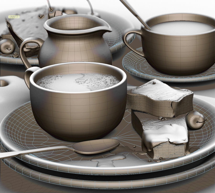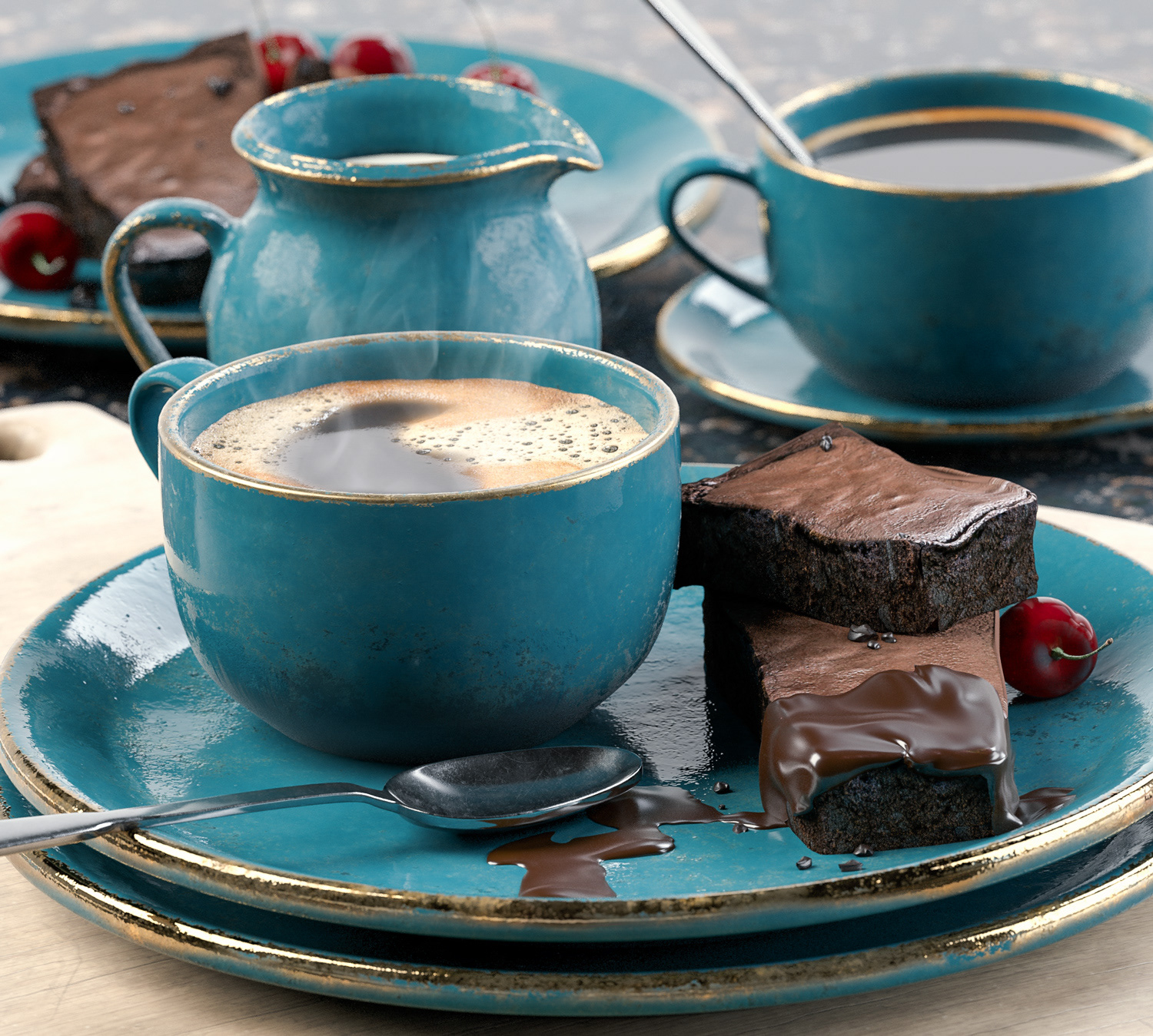 Realistic render of coffee and cake.